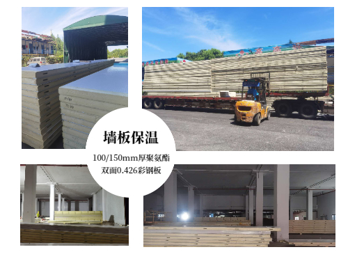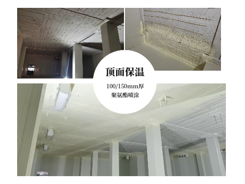 庫體墻板采用100mm(冷藏)/150mm(冷凍)聚氨酯雙面0.426彩鋼板;庫體頂面采用聚氨酯噴涂100mm(冷藏)/150mm(冷凍)厚,B1級阻燃,表面噴涂防火涂料;地面采用150mm厚擠塑板保溫。具有良好的保溫性能和防火性能,符合國家消防標準要求。